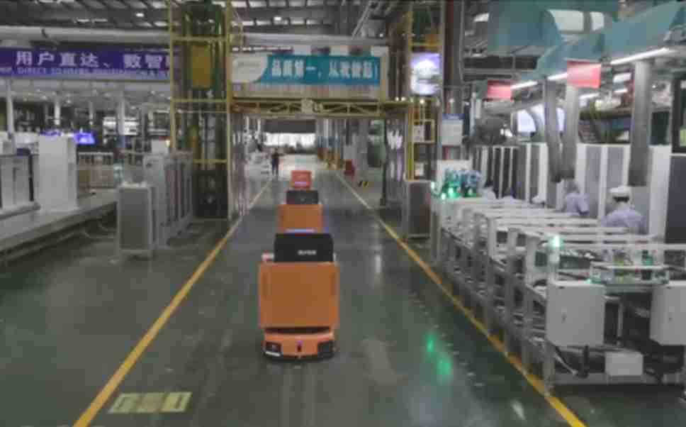为车载冰箱物流配送打造的智能解决方案,,,,包含产中物流通过潜伏举升AMR搬运至线边,,,,产后成品物流智能仓储,,,流程包含产中物流智能齐套入库,,线边安灯叫料AMR智能配送至线边,,,,成品入库、、、、出库,,,,通过无人堆高车机器人,,,,智能仓储管理替代人工作业管理,,,,实现更高存储、、、更高效率、、、、更具柔性化的解决方案。。